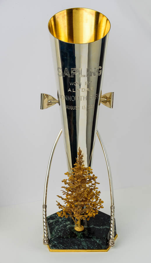 Veitch decided Alydar needed blinkers for the Sapling Stakes because the horse was looking around the track during the race. The track was muddy, but Alydar again crushed the competition with his stretch run, winning by two and a half lengths.
