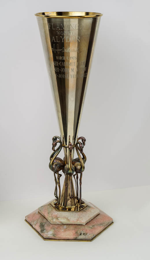 Alydar broke better than usual and settled nicely at the back of the pack. In the stretch, Alydar “slowed down because he thought the race was over,” Jockey Velasquez said, “So I had to keep after him.” Alydar drew away from the field to win by four and a half lengths. Alydar was only a fifth of a second off the stakes record and 2/5 faster than Seattle Slew’s time the previous year.